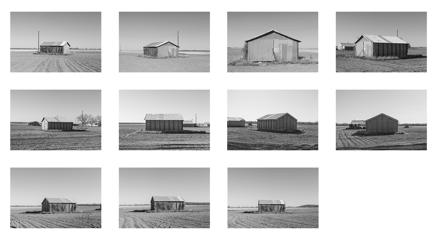 On December 28, 2011, I walked in a circle around the eastern-most barn on our family farm and made 11 photographs over a period of 7 minutes, forming a sequential perspective. I recently learned the Bechers referred to this as “Abwicklungen, a term loosely translated as ‘unwinding’ or ‘unfolding.’’